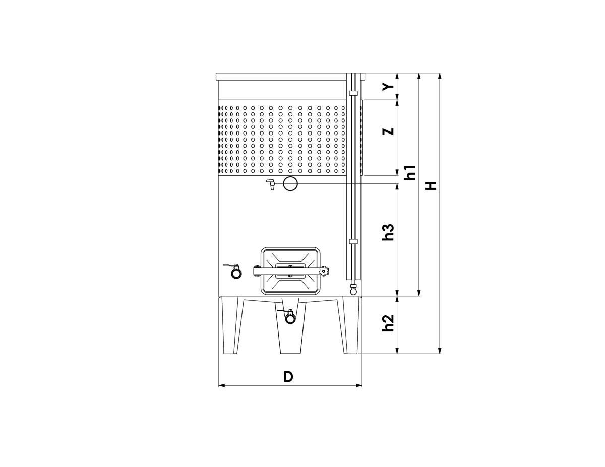 Az alsó négyzet alakú ajtó lehetővé teszi a tartály egyszerű ürítését és tisztítását.